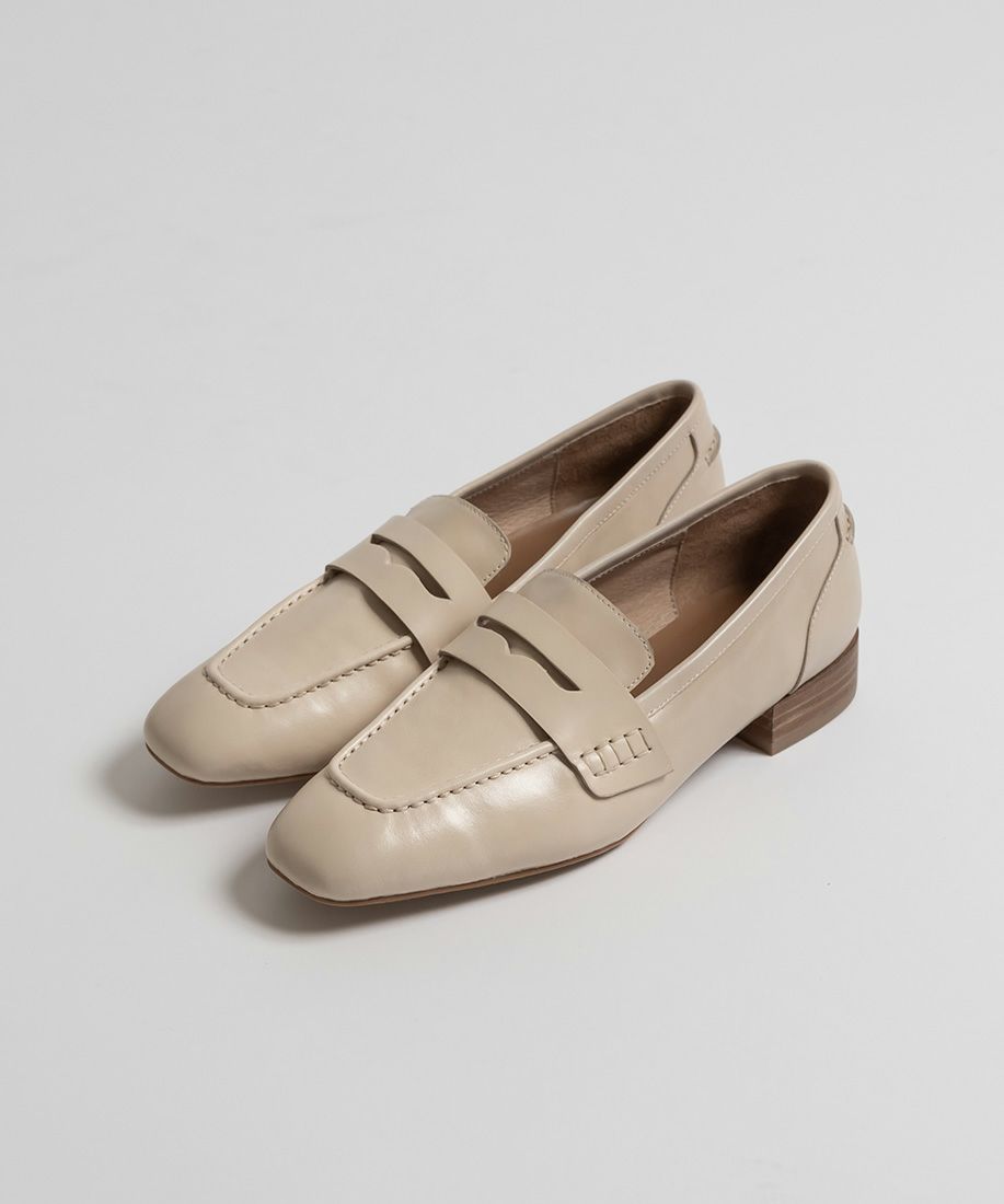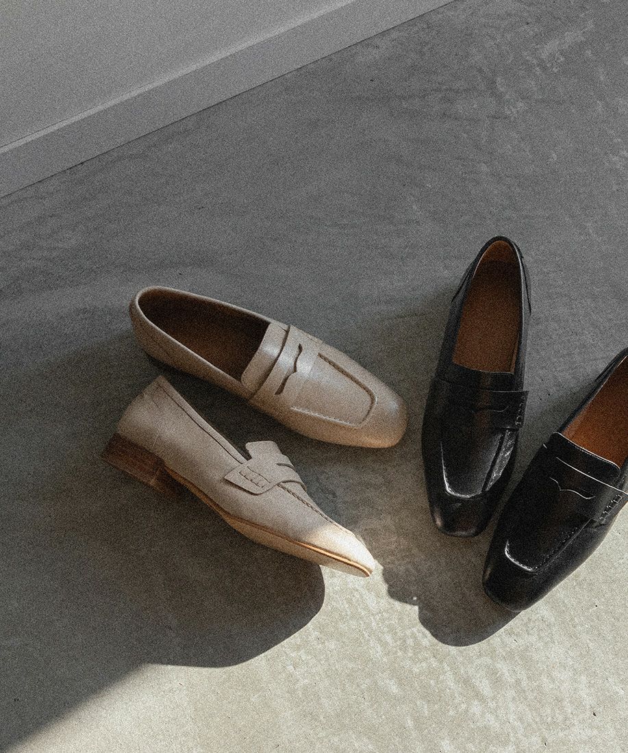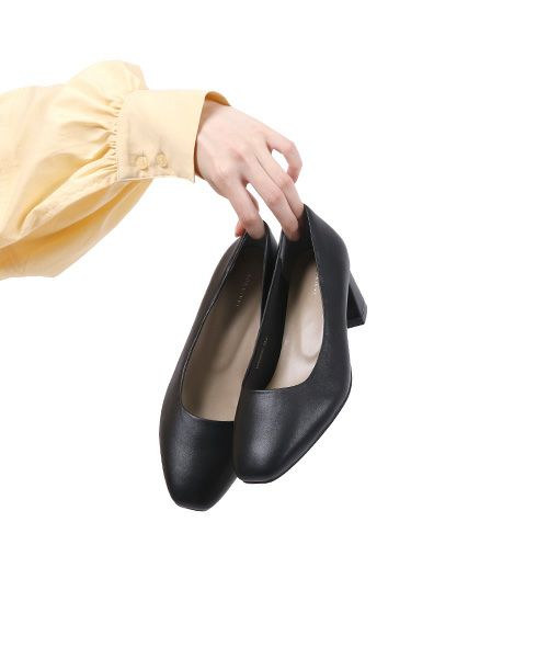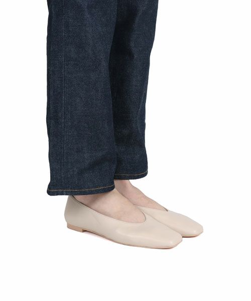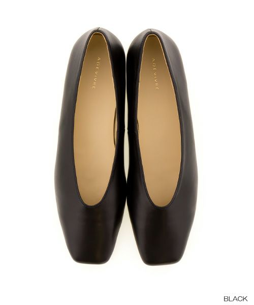 【70%OFF】スクエアトゥレザーフラットパンプス