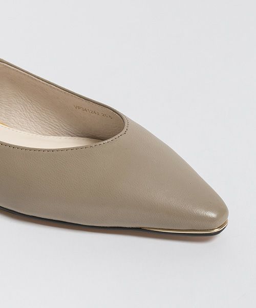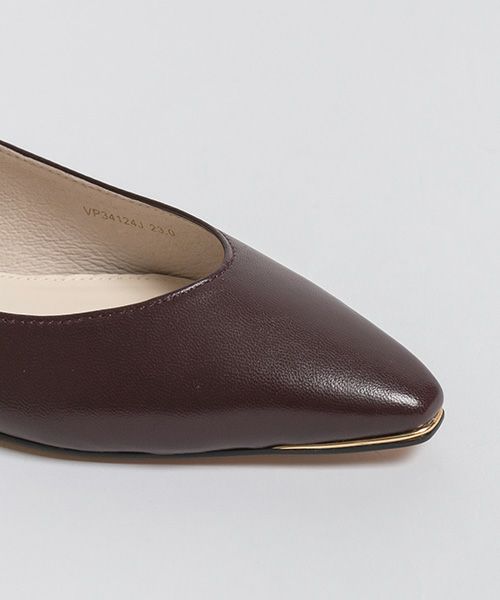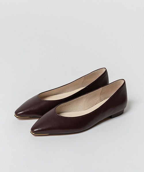 【50%OFF】レザーゴールドパーツフラットパンプス