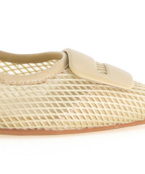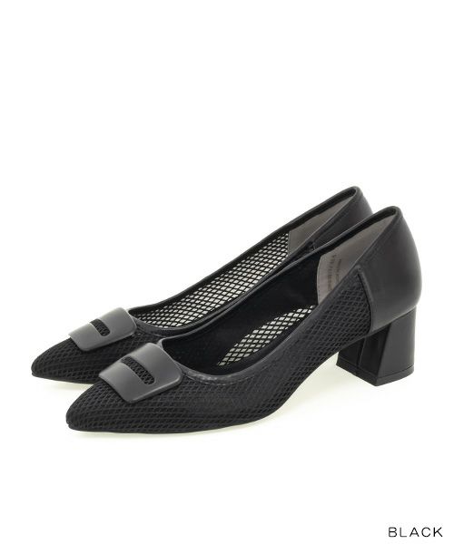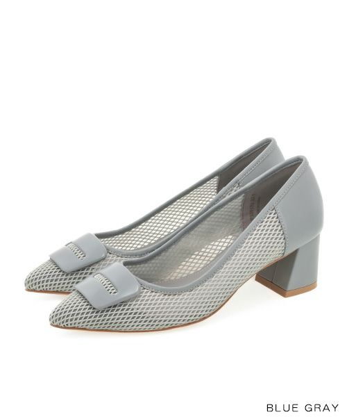 チュールとメッシュ生地を重ねた程よい透け感のあるポインテッドパンプスです。