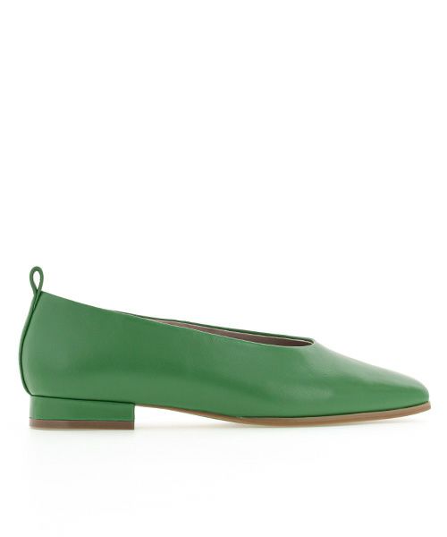 スクエアトゥに深めなフロントラインでマニッシュな印象を持たせたシューズ