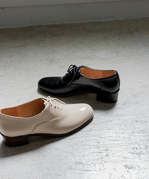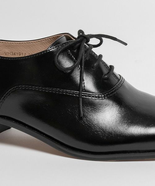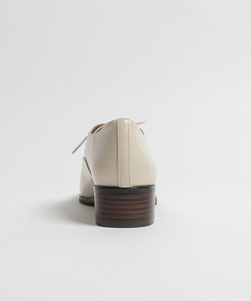 メンズライクなレースアップデザインですが、少し丸味のあるアーモンドトゥと4cmヒールで女性らしく上品な雰囲気に。
