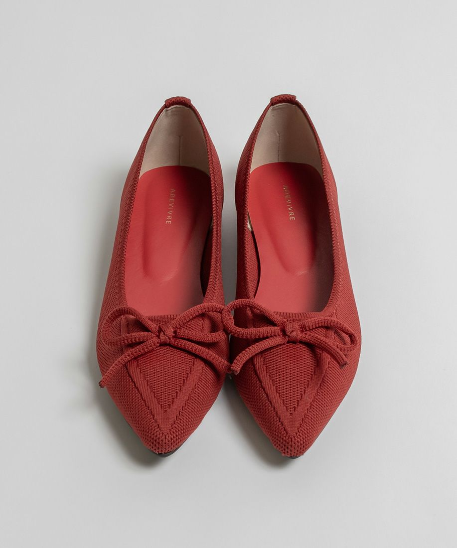 【20%OFF】サステナブル ニットリボンフラットパンプス