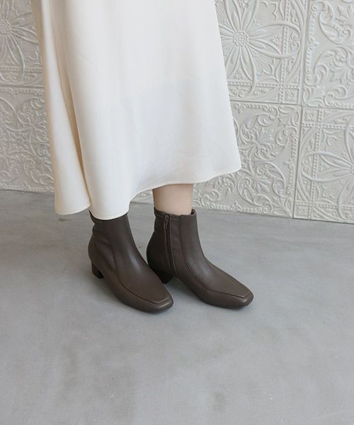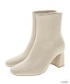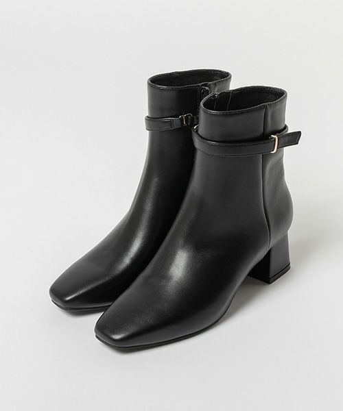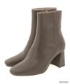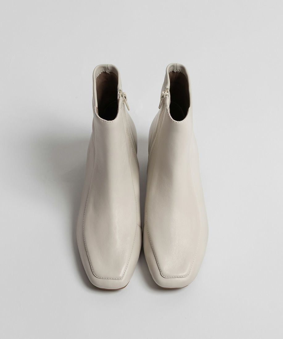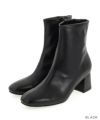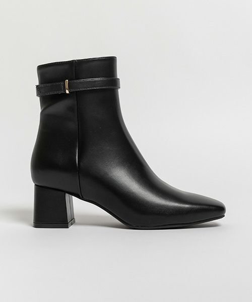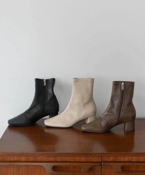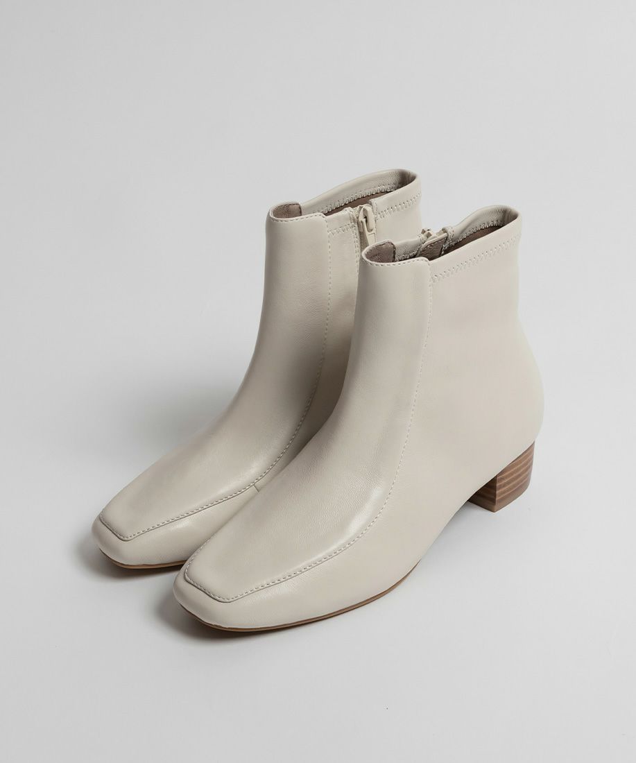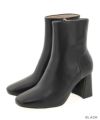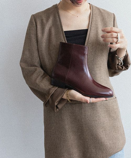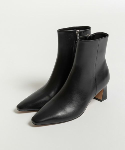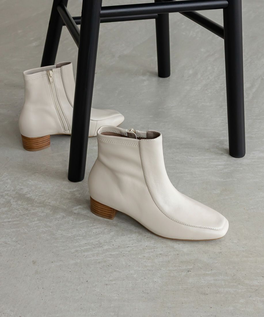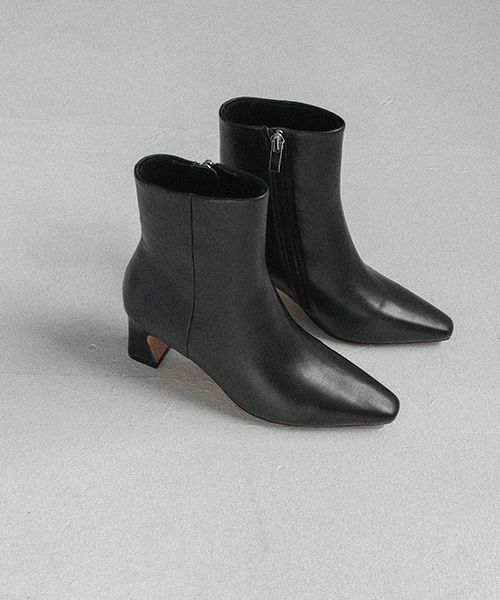 【50%OFF】レザー ナロースクエアトゥショートブーツ