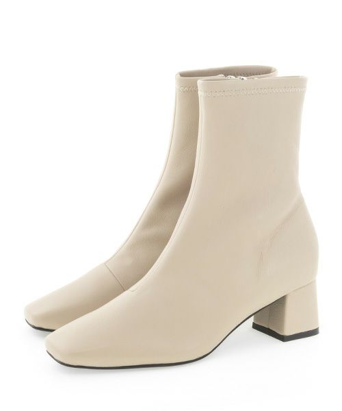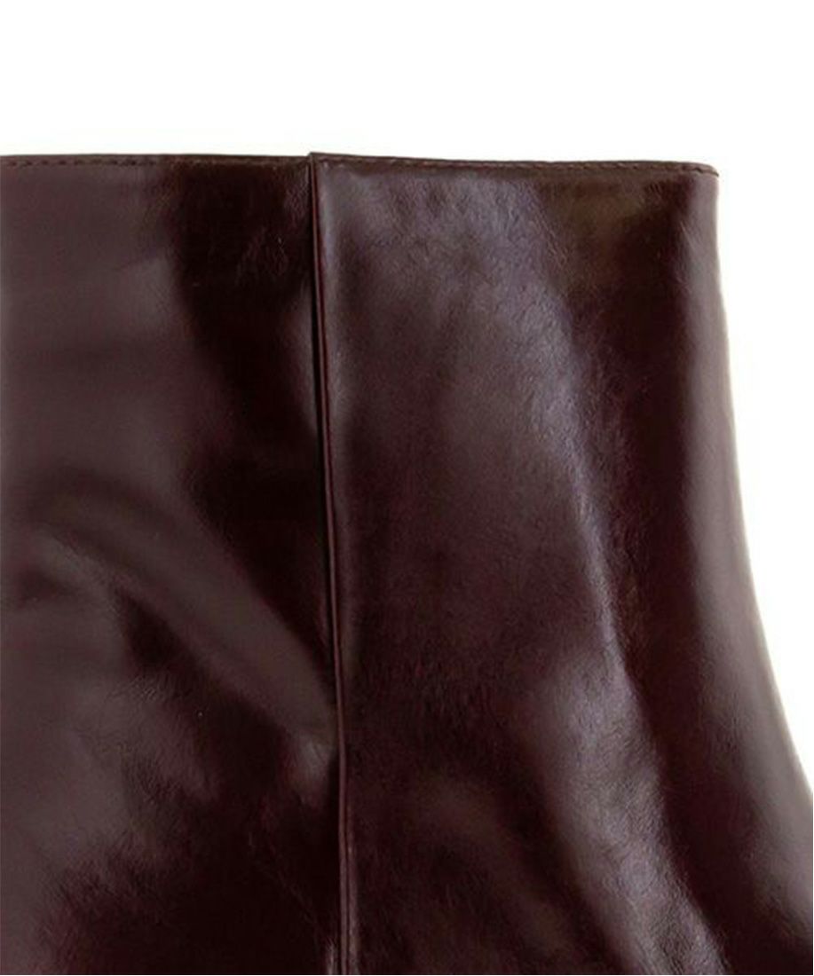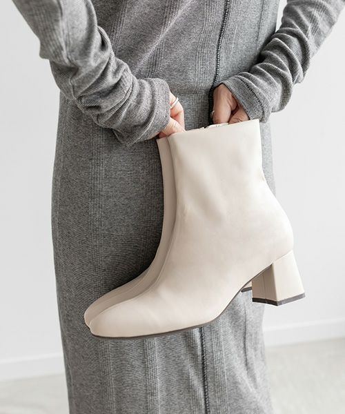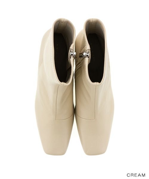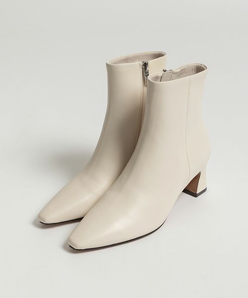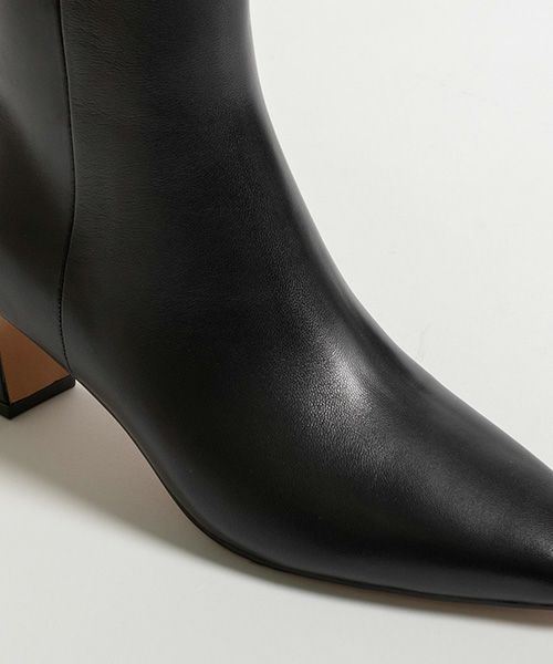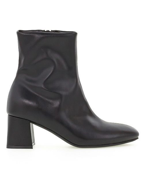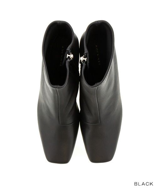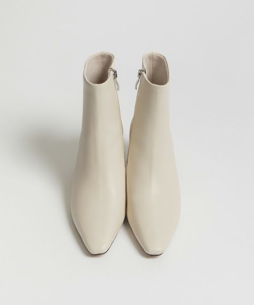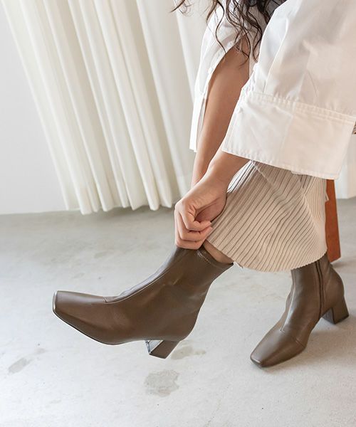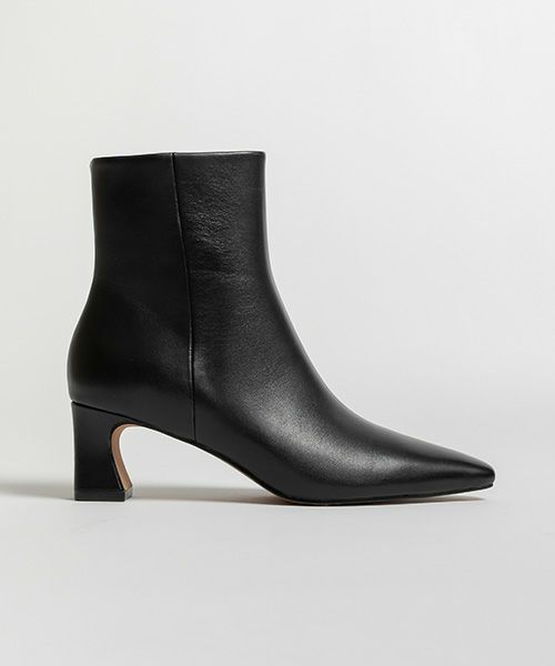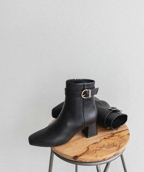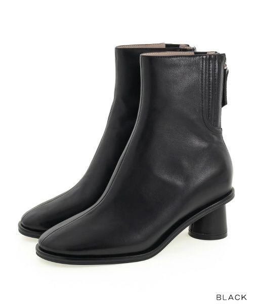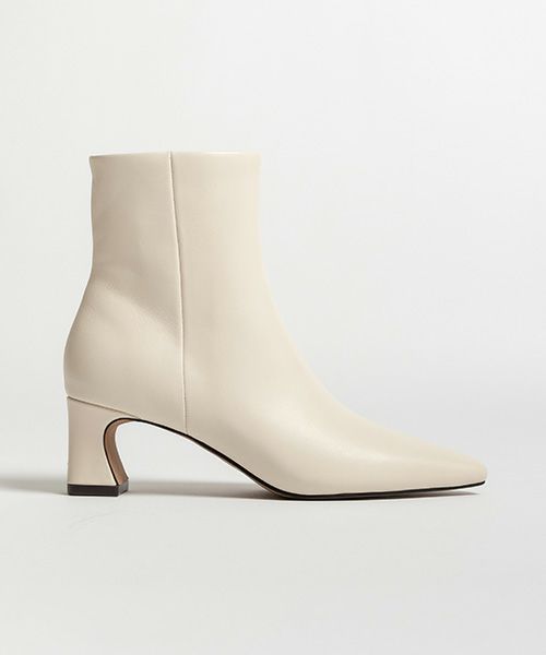 【50%OFF】レザー ナロースクエアトゥショートブーツ