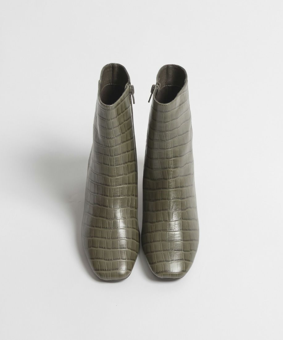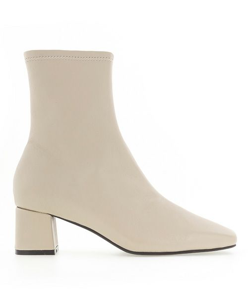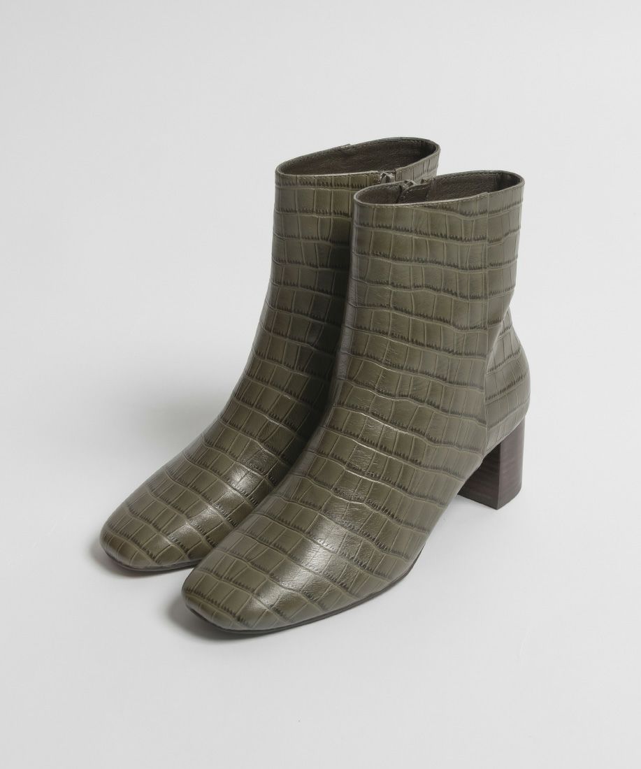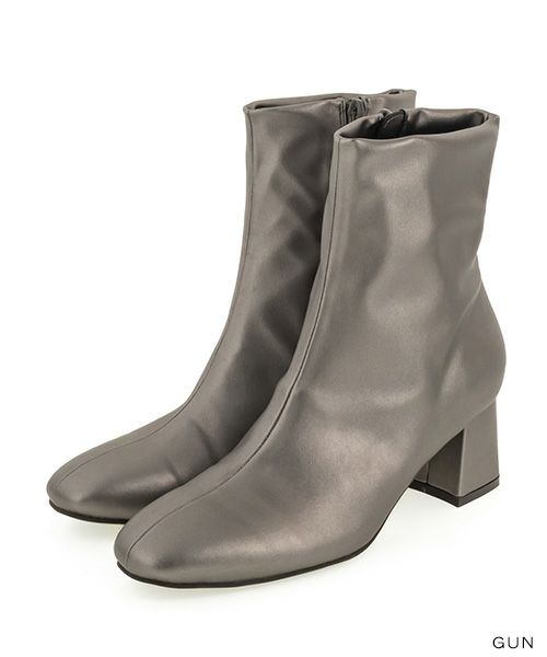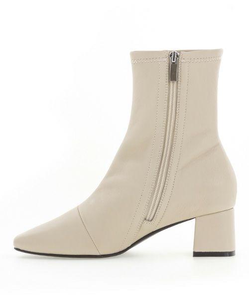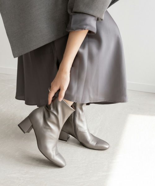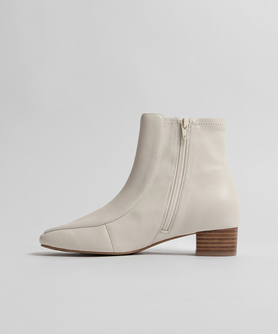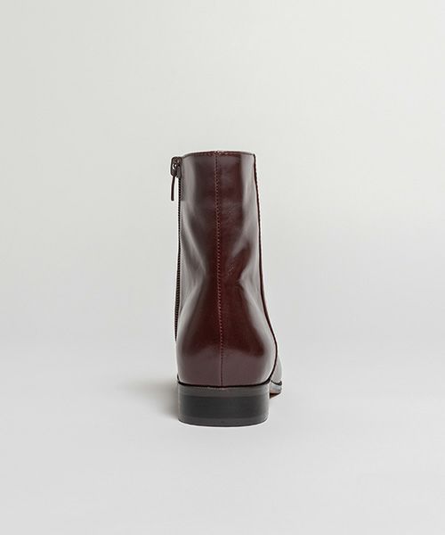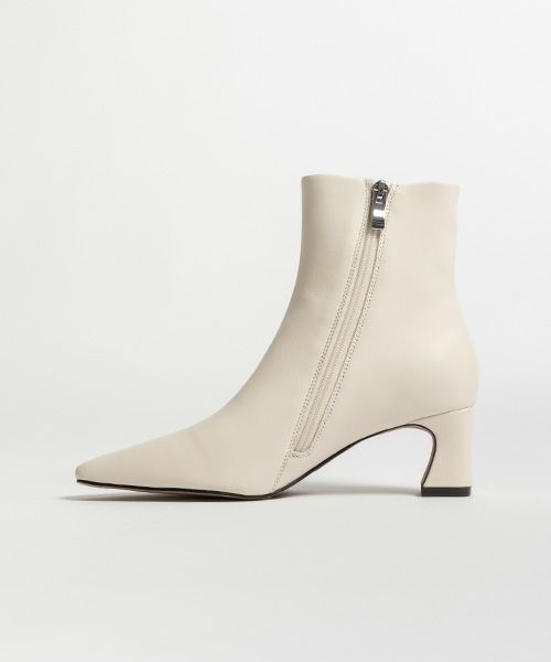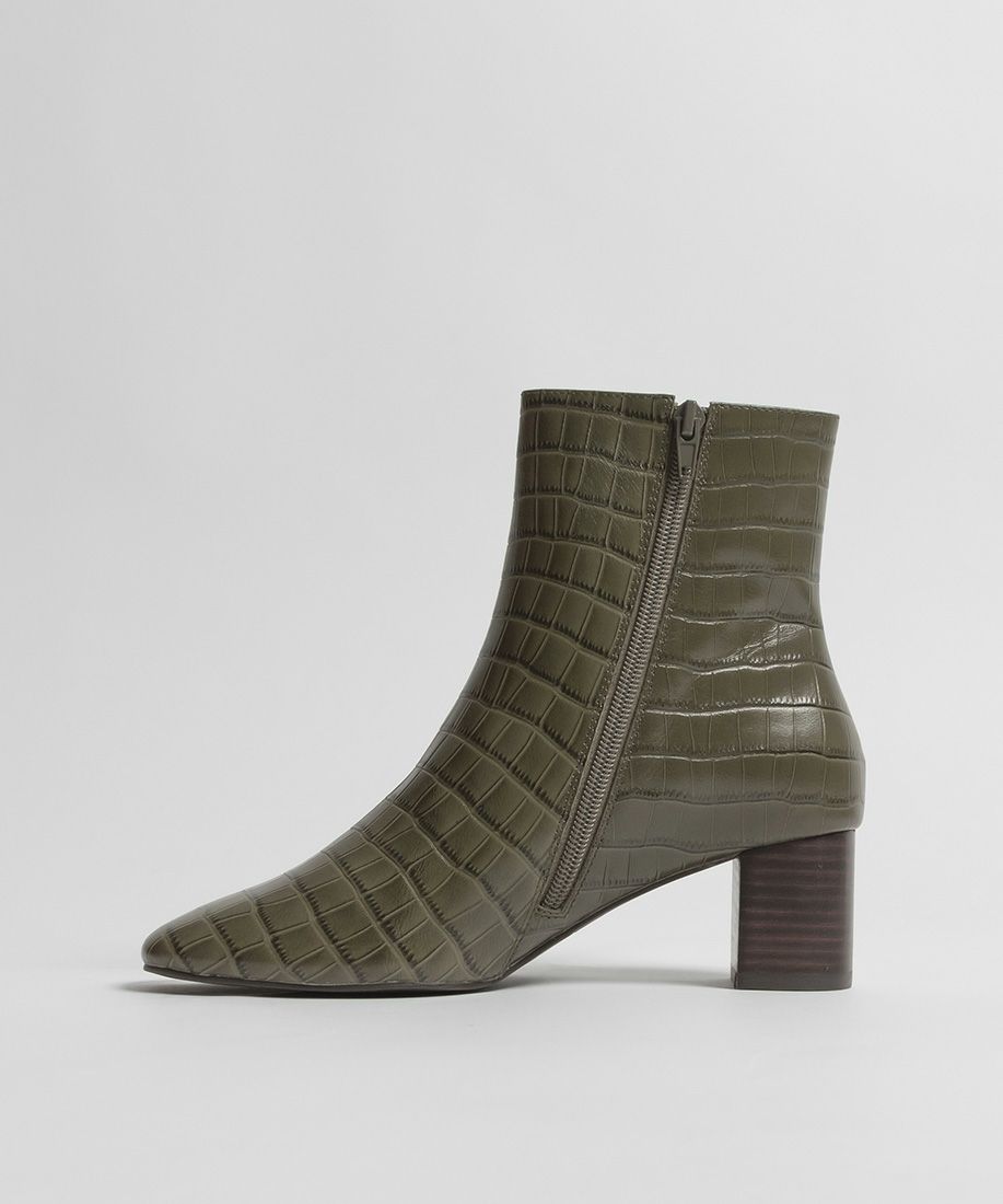 【50%OFF】レザー ナロースクエアトゥショートブーツ