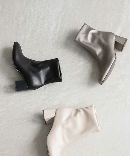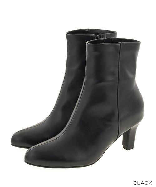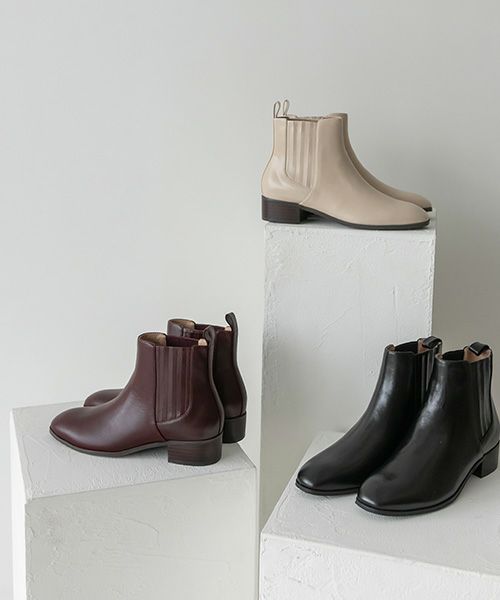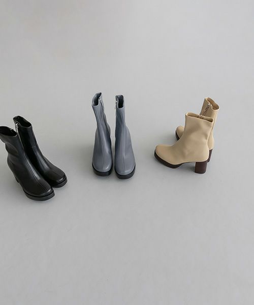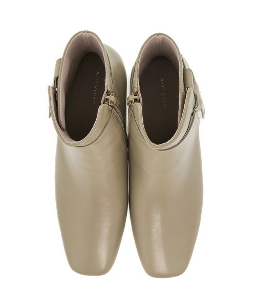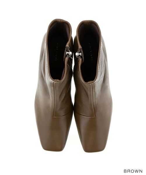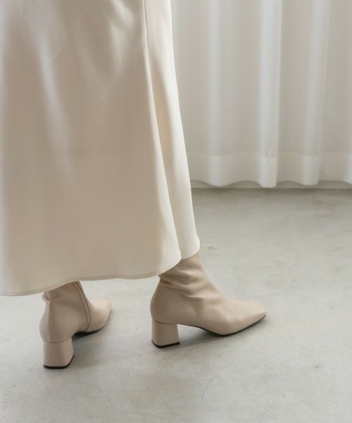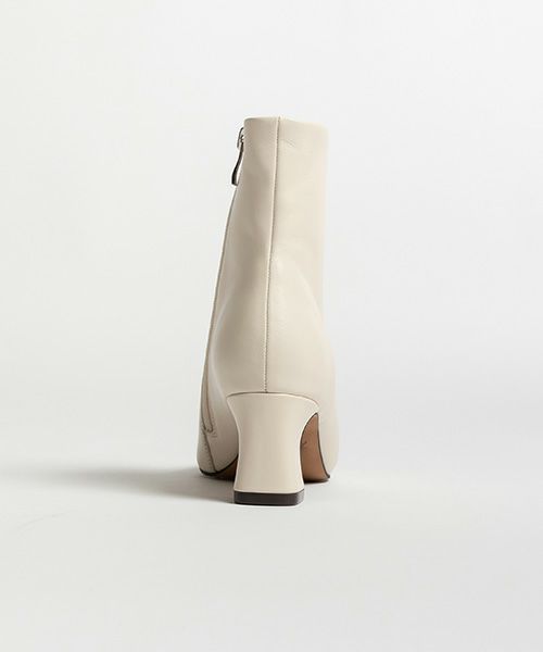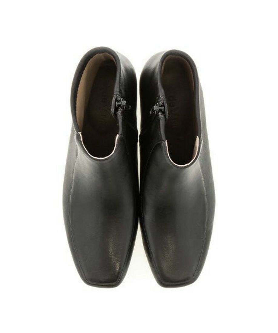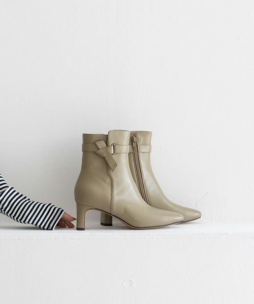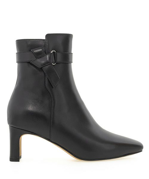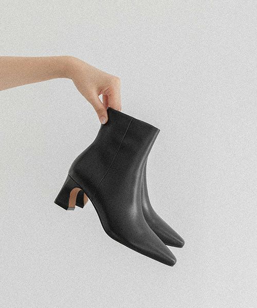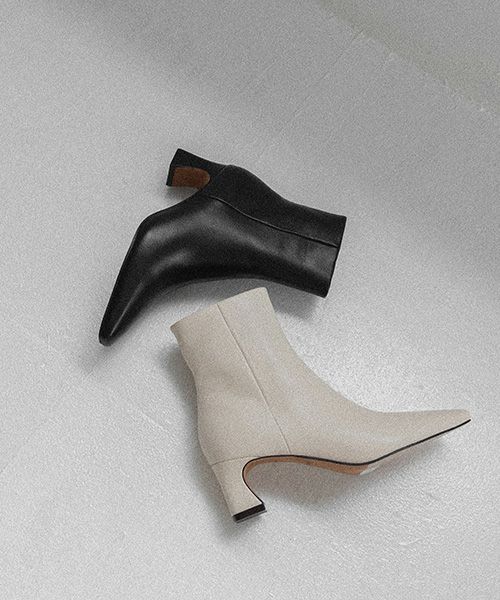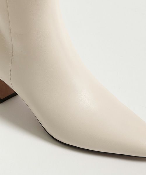 【50%OFF】レザー ナロースクエアトゥショートブーツ