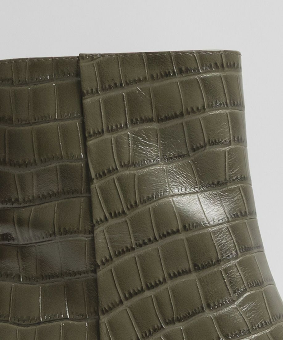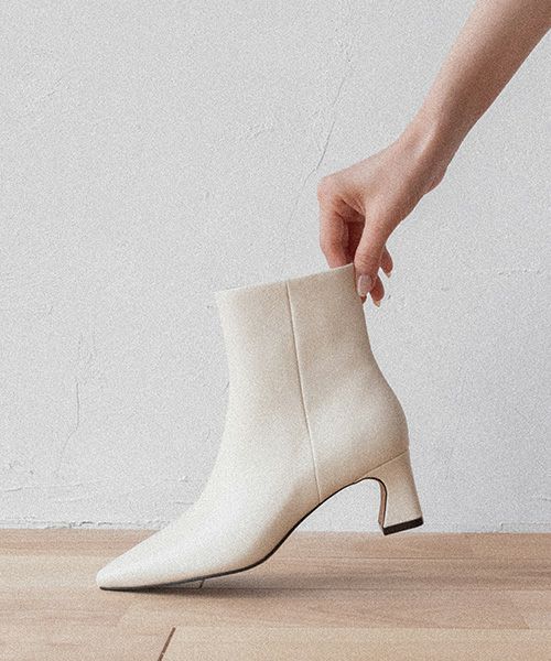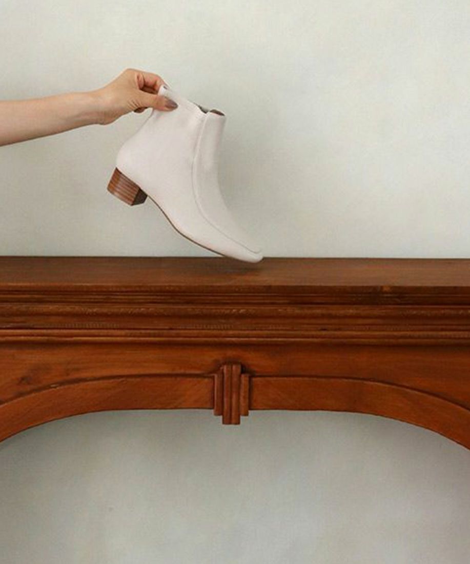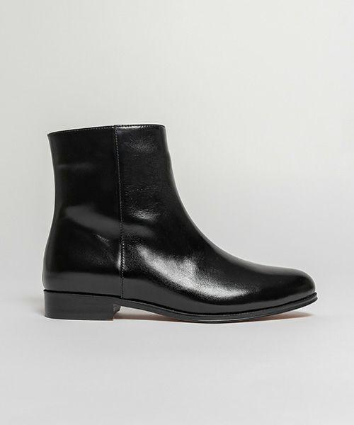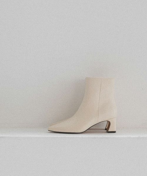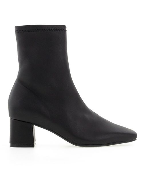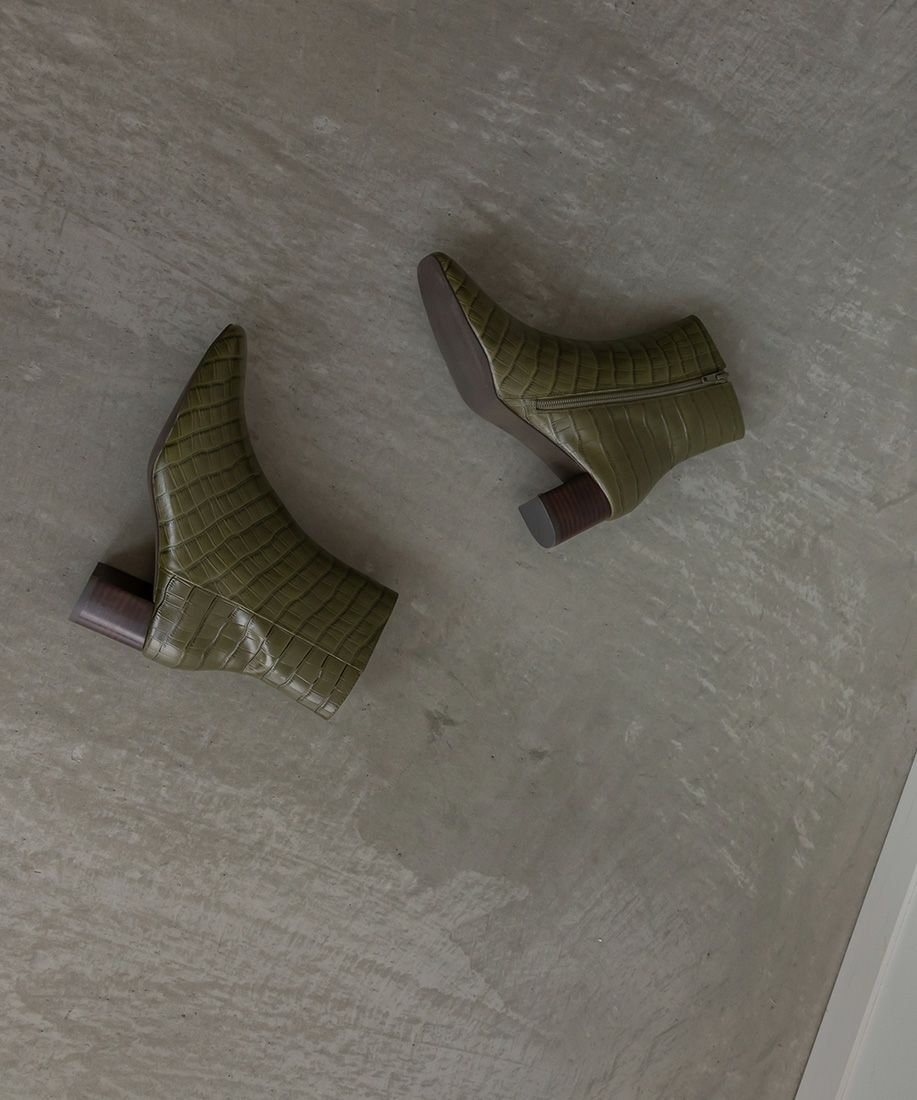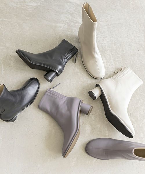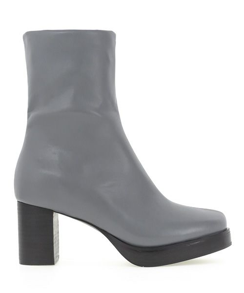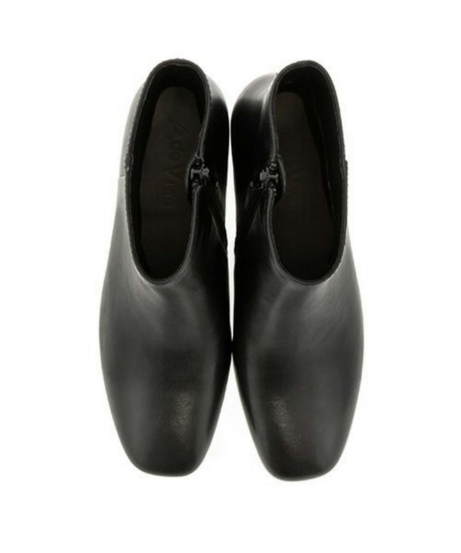 【50%OFF】レザー ナロースクエアトゥショートブーツ