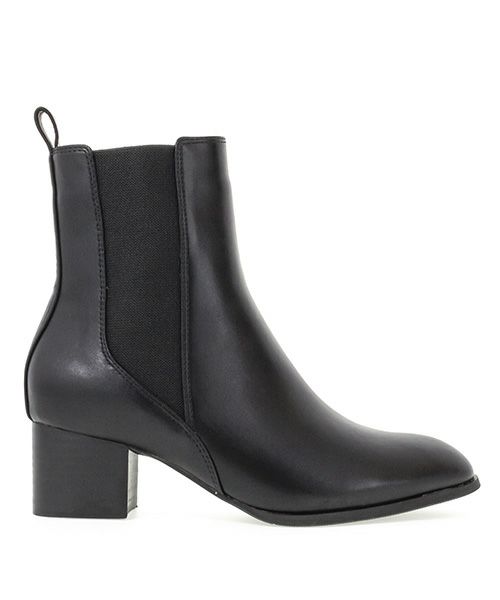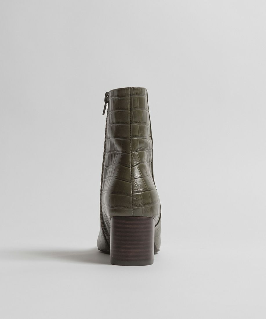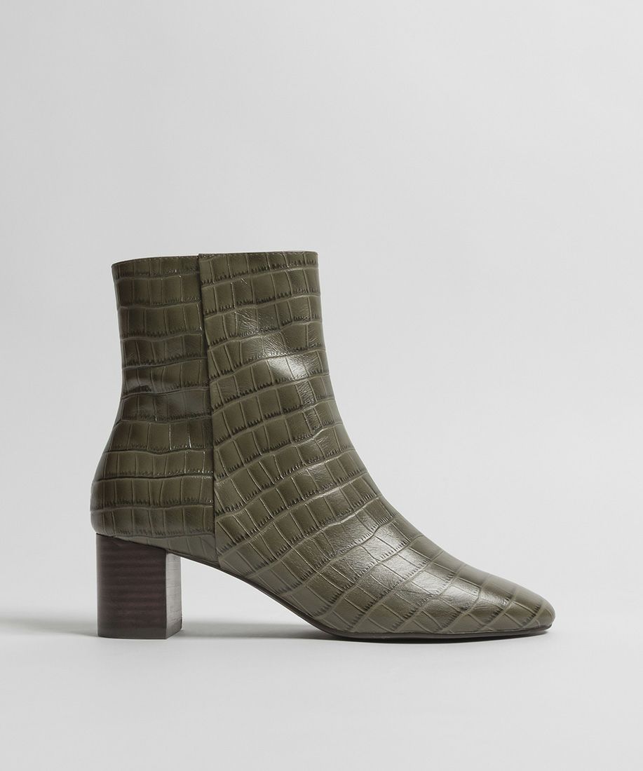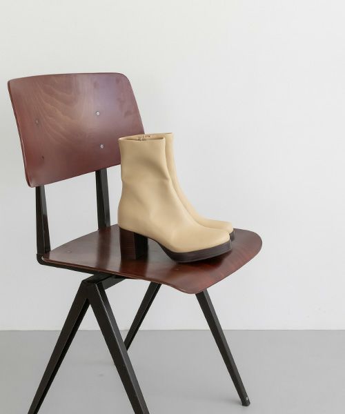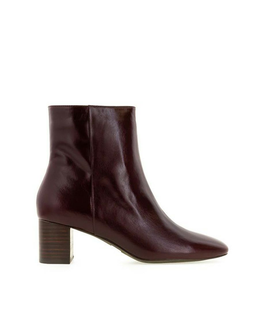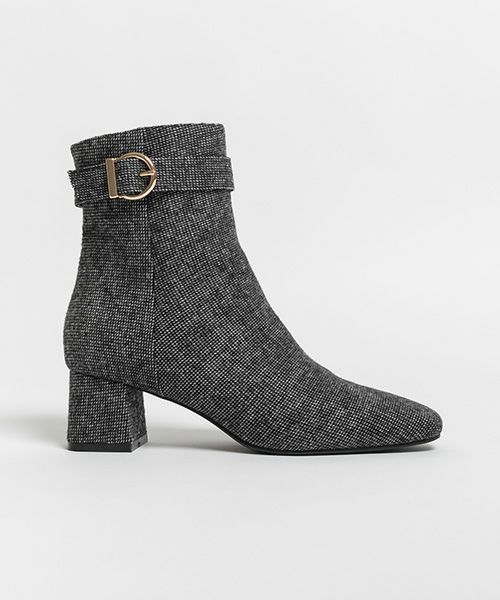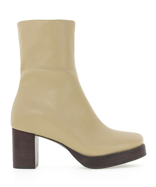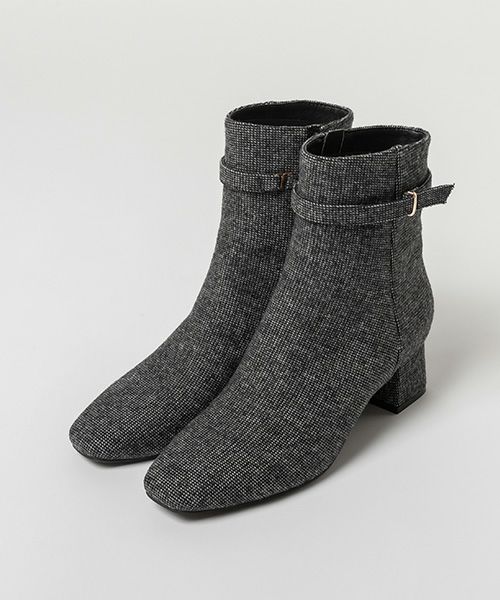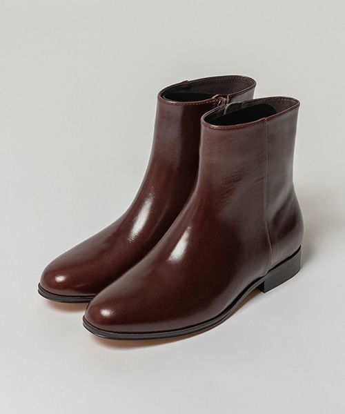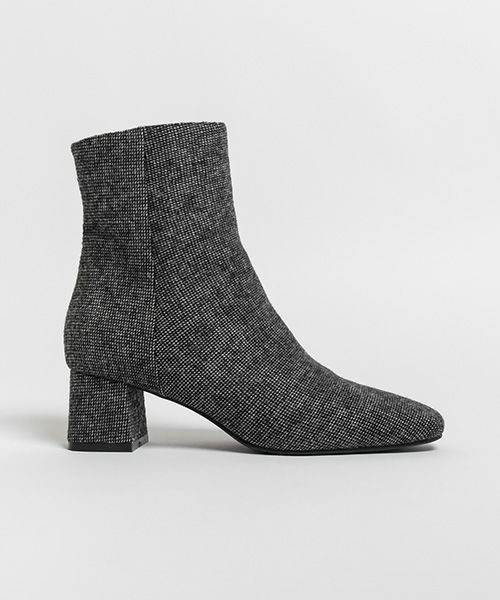 【50%OFF】レザー ナロースクエアトゥショートブーツ