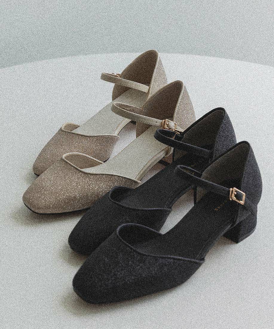 サステナブル 晴雨兼用 Vカットメリージェーンパンプス
